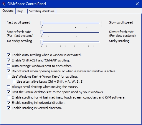 Download GiMeSpace Desktop Extender 1D: version 1.4.6 (This edition only allows scrolling in horizontal direction and has only the most basic options)